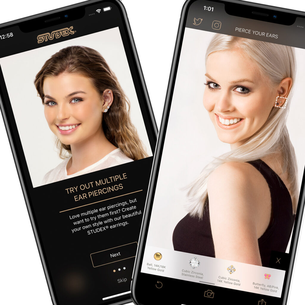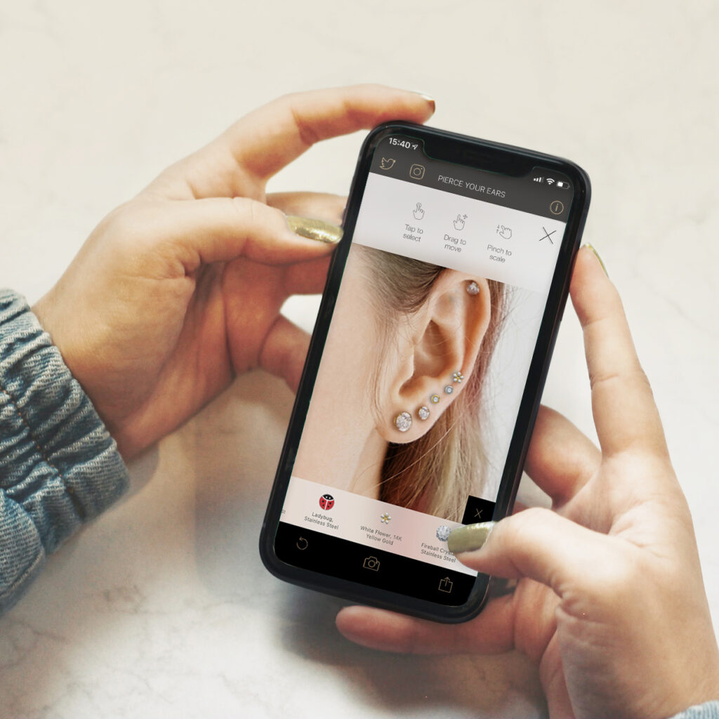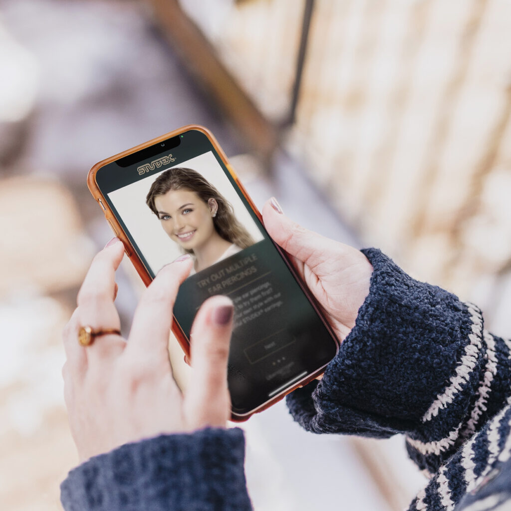 Nutze die STUDEX-App, um gemeinsam mit deinem STUDEX-Partner deine nächsten Ohrlochstech-Schritte zu planen und den gewünschten Look zu visualisieren.