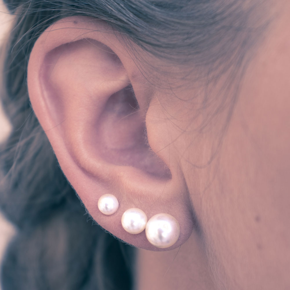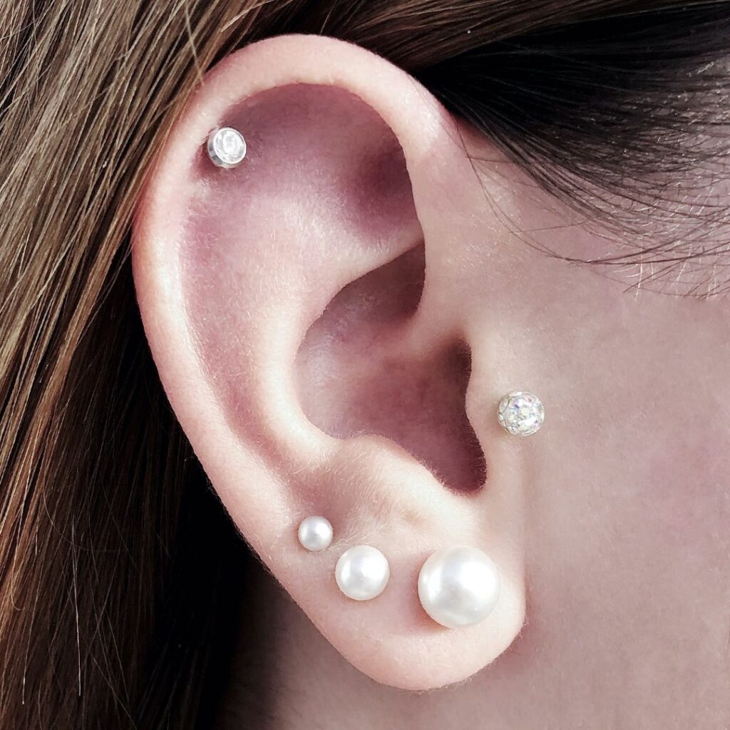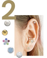 Das Kombinieren mehrerer Ohrringe pro Ohr ist eine tolle Möglichkeit, sich auszudrücken. Trage so viele Ohrringe, wie du gerade Lust hast. Spiele mit verschiedenen Designs, Größen und Materialien, um einen neuen Look auszuprobieren. Es ist das Zeitalter der kuratierten Ohren, “Ear-Partys”, Sternbild-Piercings und anderer schöner Kombinationen. Viel Spaß damit!