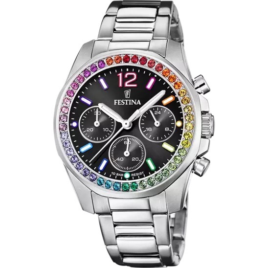 FESTINA DAMEN UHR BOYFRIEND RAINBOW F20606/3 SCHWARZ, EDELSTAHL ARMBAND