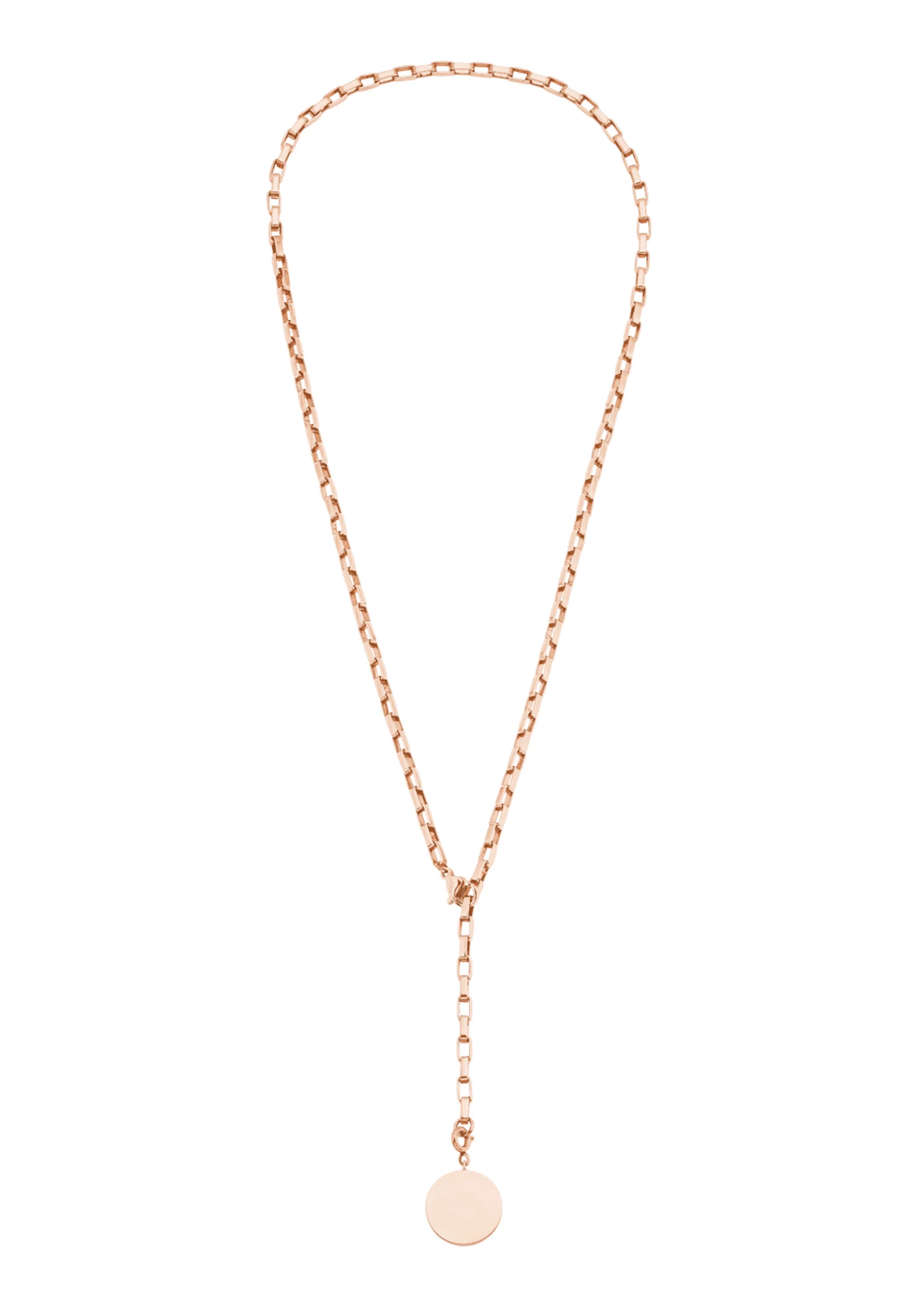 Der Bereich Stainless Steel hat tolle Neuigkeiten zu bieten: ganz nach dem Motto „Pure Chain“ laden verschiedene Kettenarten wie Figaro oder Venezia zum Kombinieren ein. Verschiedene Tragevarianten, beispielsweise als Y-Kette, schenken den Schmuckstücken einen unschlagbaren Mehrwert. Das auffällig designte Schmuckstück besteht aus IP Rose beschichtetem Edelstahl.