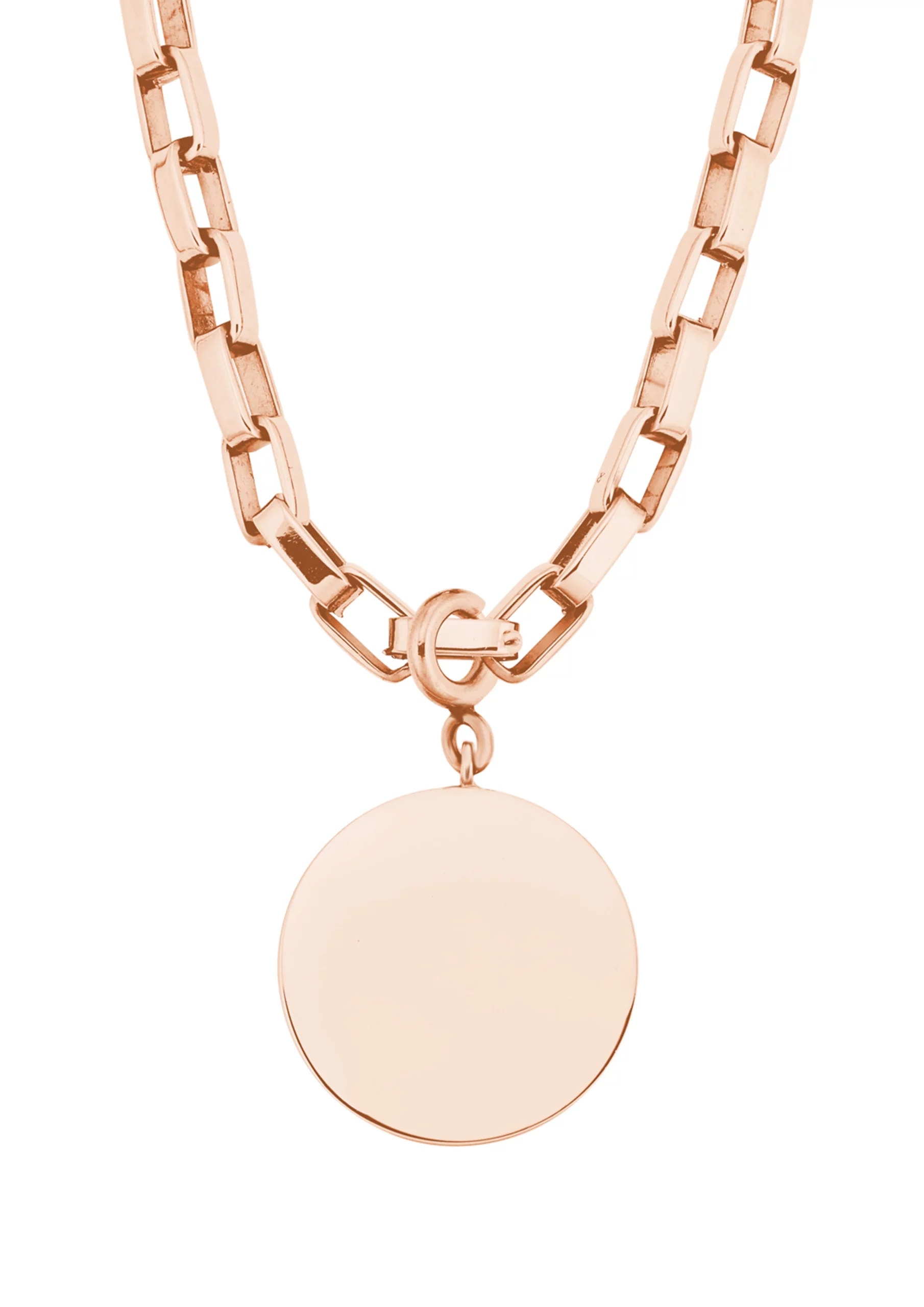 Die Fantasiekette mit Münzanhänger besteht aus Edelstahl mit IP Rose Beschichtung