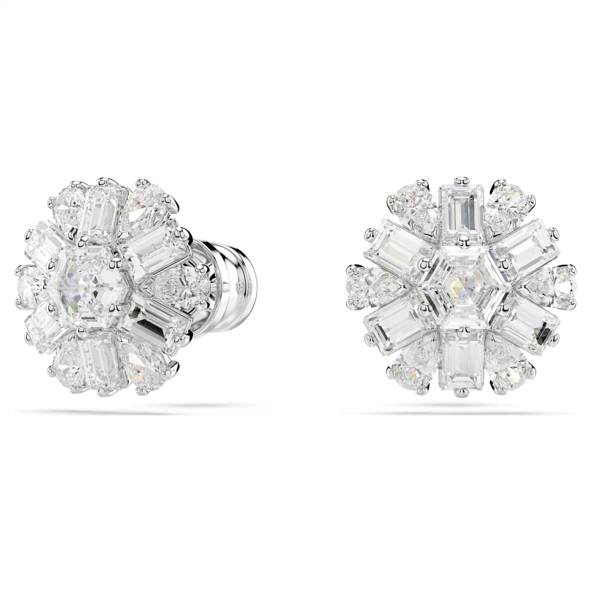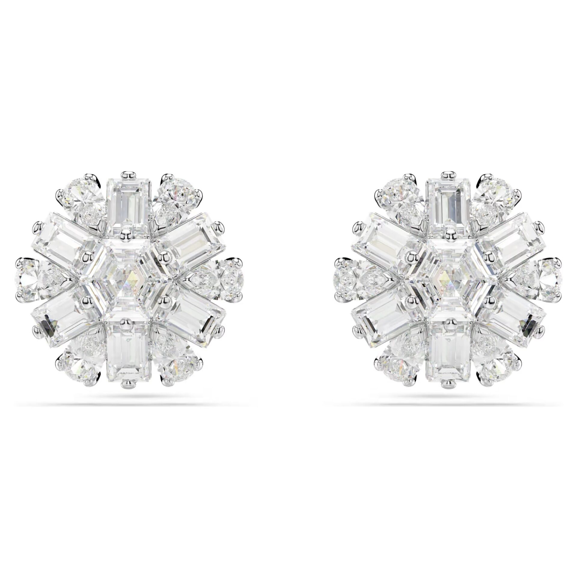Swarovski Idyllia Ohrstecker Verschiedene Schliffe, Schneeflocke, Weiß, Rhodiniert