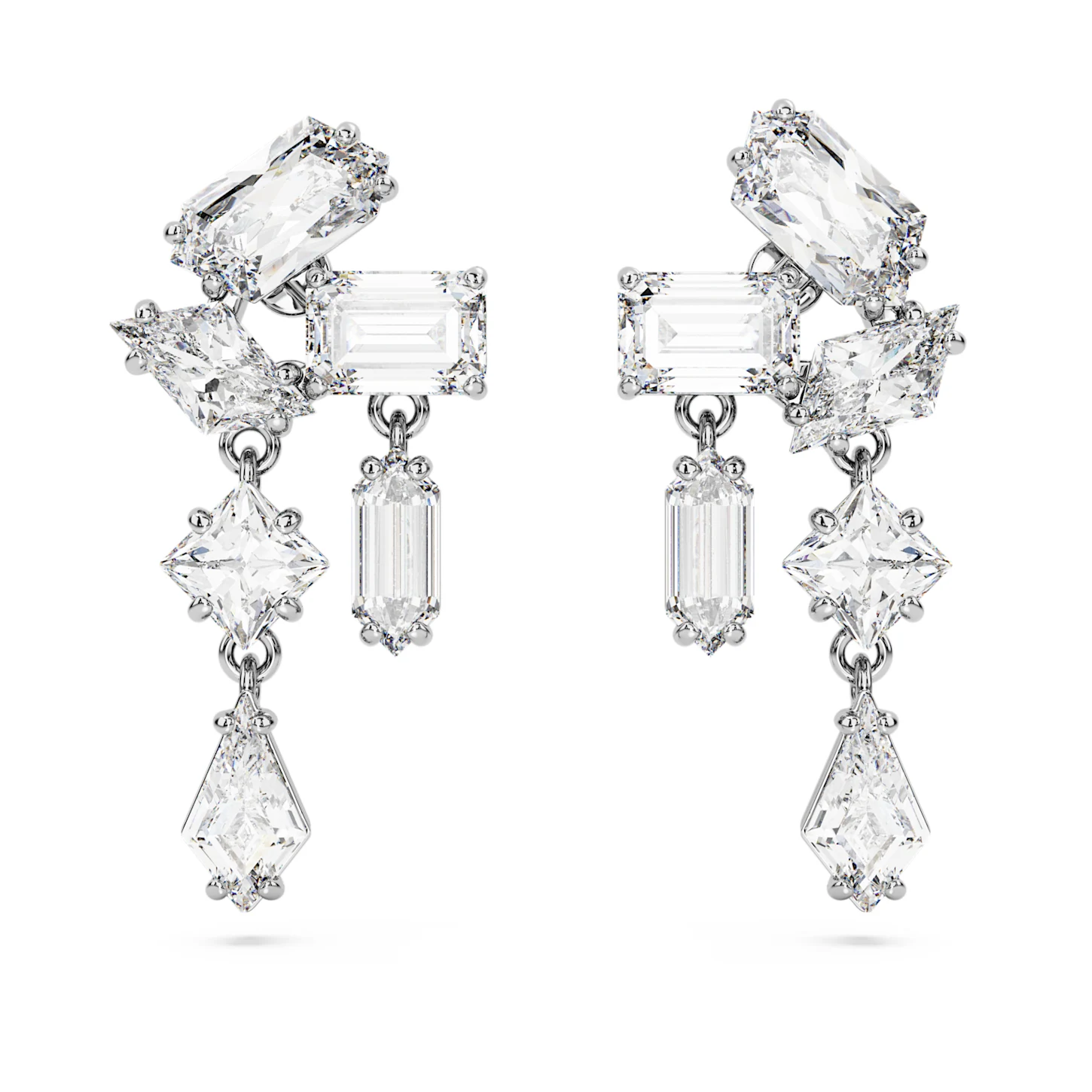 Mesmera Drop-Ohrhänger Verschiedene Schliffe, Weiß, Rhodiniert