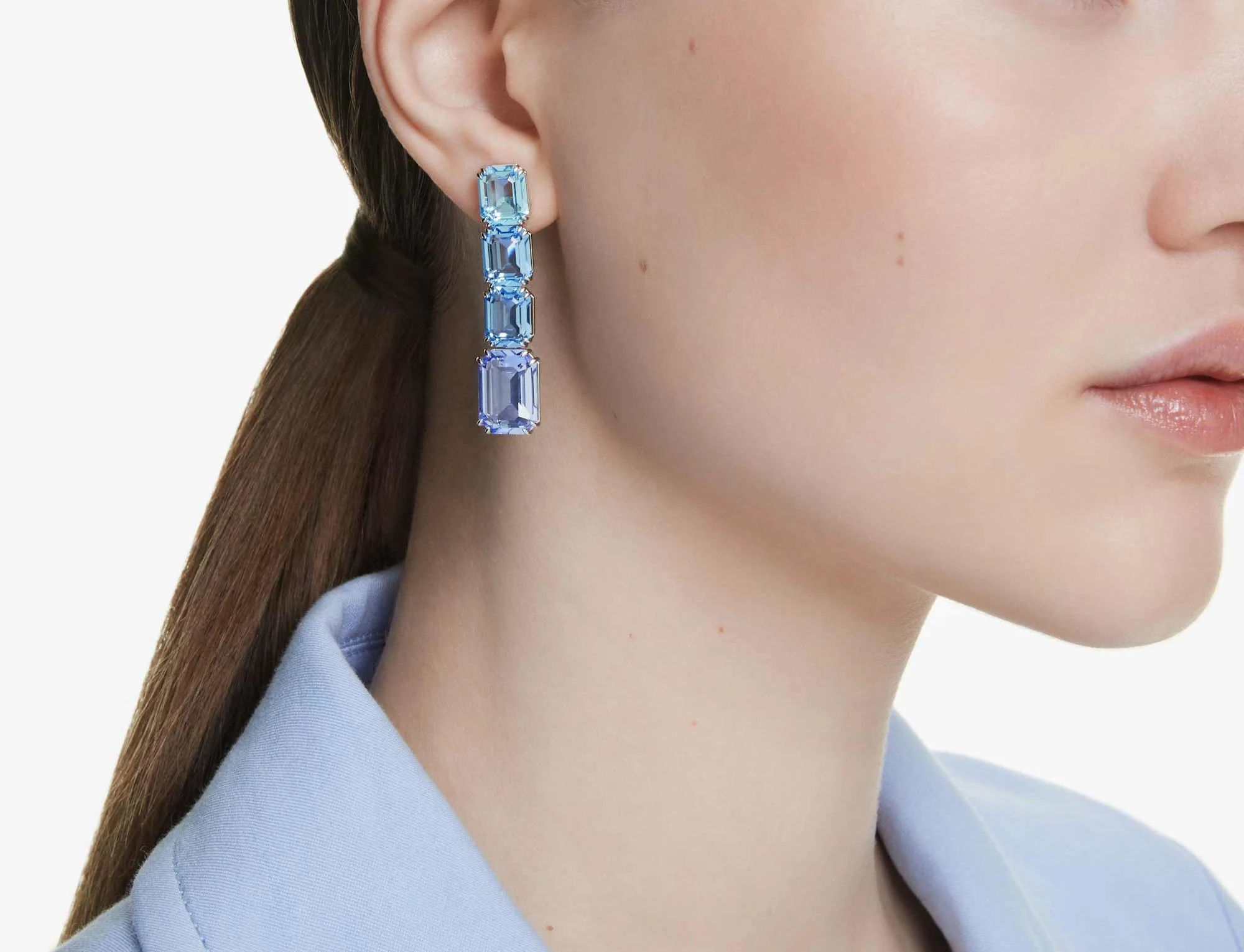 Swarovski Millenia Drop-Ohrhänger Oktagon-Schliff, Farbverlauf, Blau, Rhodiniert